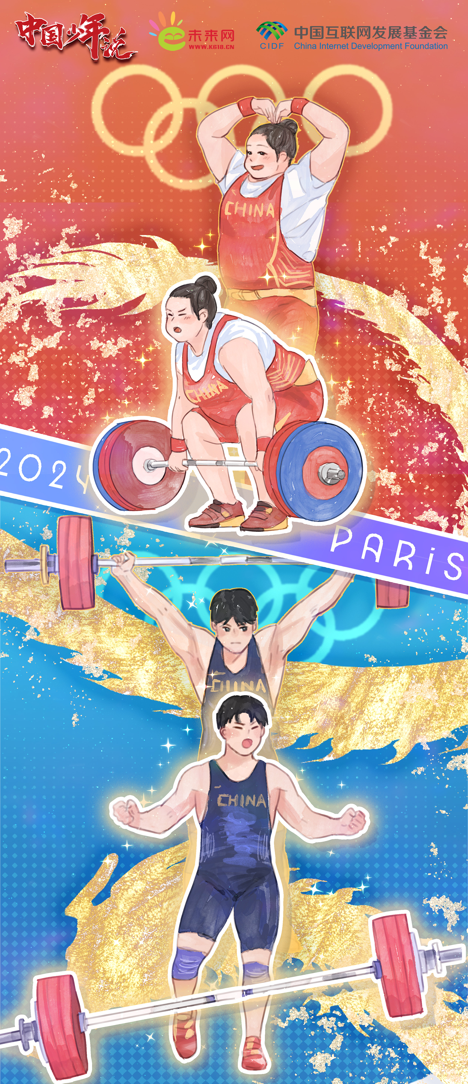 每一次杠鈴的舉起,都是對(duì)體能極限的挑戰(zhàn);每一次重量的征服,都是對(duì)自我潛能的突破。李雯雯分享訓(xùn)練日常時(shí),經(jīng)常使用一個(gè)叫“雯扎雯打”的話題詞,這也正是她一路走來,最真實(shí)而生動(dòng)的寫照。從在舉重亞錦賽刷新女子87公斤以上級(jí)三項(xiàng)世界紀(jì)錄,到在東京奧運(yùn)會(huì)奪冠并打破三項(xiàng)奧運(yùn)紀(jì)錄,再到在巴黎奧運(yùn)會(huì)上克服傷病造成的心理和身體上的障礙成功衛(wèi)冕,展示王者歸來的風(fēng)范,擁有碾壓級(jí)實(shí)力的她,一次次地將責(zé)任扛在了肩上,也將國家榮譽(yù)穩(wěn)穩(wěn)地舉了起來。同樣,劉煥華在3年內(nèi)橫跨5個(gè)級(jí)別完成升級(jí),并最終在巴黎奧運(yùn)會(huì)上“舉”起了這枚極具分量的金牌背后,是他克服了不斷增重的痛苦、舉重訓(xùn)練的枯燥,更以“拼命三郎”的毅力和決心進(jìn)行自我錘煉。巴黎奧運(yùn)會(huì)之前,中國男舉還沒有100公斤以上級(jí)別的奧運(yùn)金牌,第一次站上奧運(yùn)舞臺(tái)的他不僅堅(jiān)實(shí)地邁出了這一步,更以卓越的表現(xiàn)向世界宣告了中國舉重不可估量的潛力。