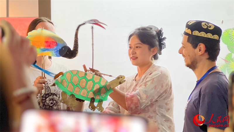“這是我第一次來新疆,在來之前我很喜歡《吐魯番的葡萄熟了》這首歌,也對(duì)新疆充滿了好奇?!痹诓菝佬g(shù)館,俄羅斯翻譯家、現(xiàn)任莫斯科物理技術(shù)學(xué)院中文系副教授羅子毅在皮影戲展示區(qū)駐足觀看并親身體驗(yàn)了皮影戲的基本技巧。“我學(xué)過表演,也很喜歡歌劇,這趟新疆之行剛開始就能體驗(yàn)到中國的皮影戲,我對(duì)后面的行程充滿了期待?!?/p>