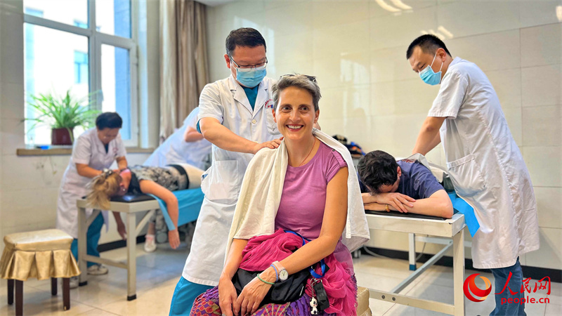 在新疆醫(yī)科大學(xué)一附院(昌吉分院),中外漢學(xué)家、翻譯家、作家參觀中醫(yī)館,體驗(yàn)中醫(yī)文化。人民網(wǎng) 李欣洋攝