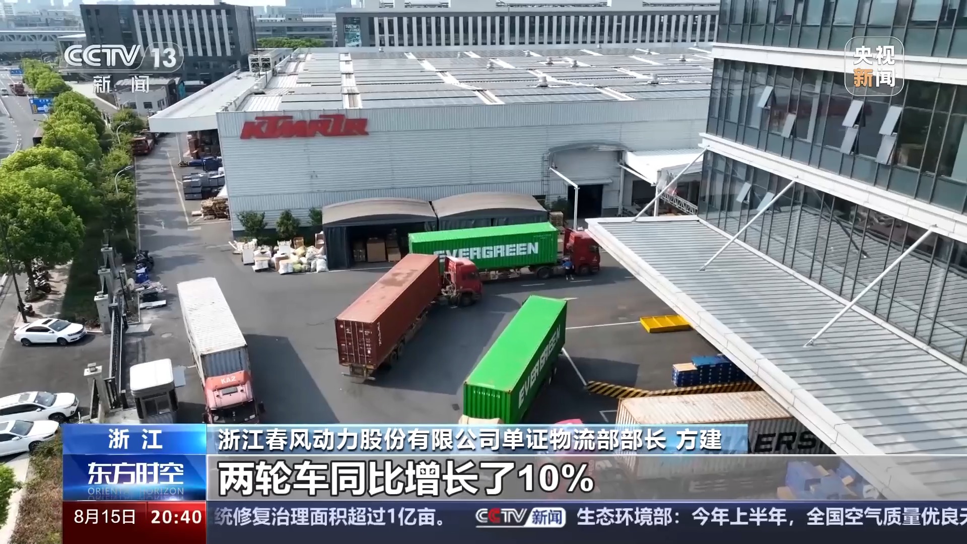 浙江春風(fēng)動力股份有限公司單證物流部部長 方建:上半年我們出口四輪車同比增長了40%,兩輪車同比增長了10%,然后集裝箱大概出運了7700個大柜,同比增長了27%。