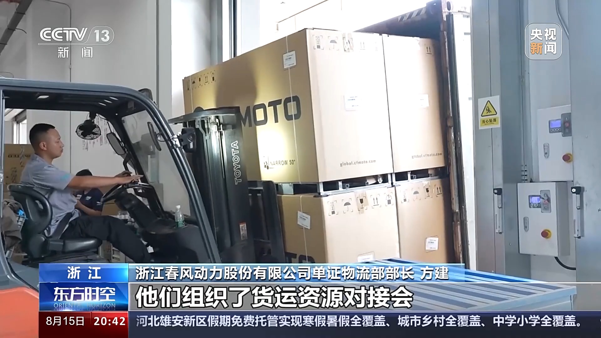 浙江春風(fēng)動力股份有限公司單證物流部部長 方建:多方面去尋求這種資源的匹配,然后政府這邊也積極給我們匹配一些資源。他們組織了貨運資源對接會,我們在這里面也匹配了一些臨時的艙位。