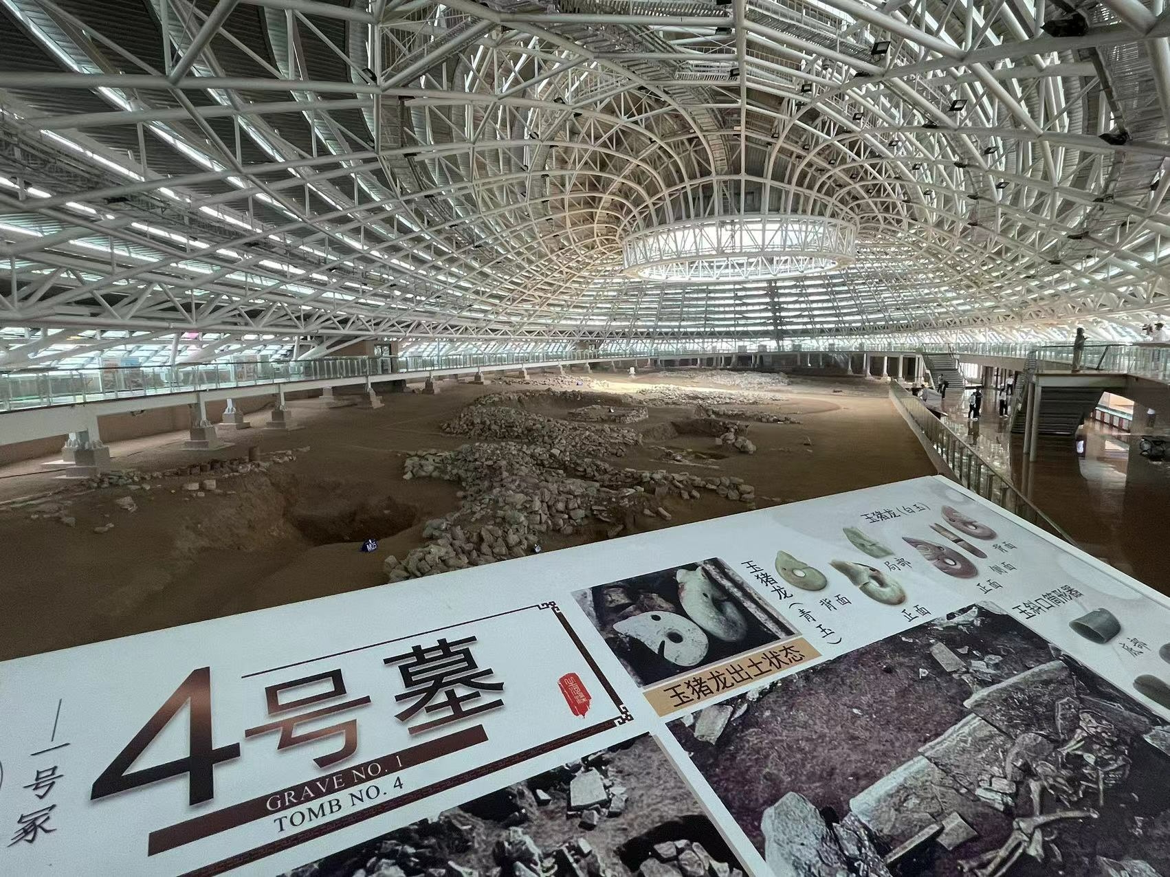 查海遺址是新石器時(shí)代古人類聚落遺址,距今約八千年?!爸袊?guó)人對(duì)龍的崇拜在查海時(shí)代就已經(jīng)出現(xiàn)。這個(gè)龍形堆石,是迄今為止我國(guó)考古發(fā)現(xiàn)的年代最早、形體最大的龍形象?!辈楹_z址博物館館長(zhǎng)李井巖告訴記者,這條“龍”采用當(dāng)?shù)卮笮【鶆虻募t褐色天然石塊為“鱗”,由人工堆砌擺放而來,展示出巨龍就要騰空飛舞的態(tài)勢(shì)。