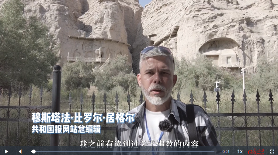 共和國(guó)報(bào)網(wǎng)站總編輯穆斯塔法·比羅爾·居格爾說(shuō),這是他第一次參觀佛教相關(guān)場(chǎng)所,中國(guó)政府對(duì)石窟的保護(hù)使人們得以見證千年前的歷史,并了解那時(shí)的人們的宗教信仰與處事哲學(xué)。他指出:“這是一種文化傳承。我們應(yīng)當(dāng)延續(xù)和保護(hù)這些文化,并向后代講述那段故事?!?strong>(光明網(wǎng)記者 張安迪)