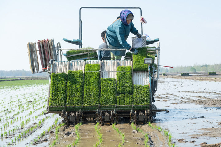 在黑龍江北大荒集團(tuán)前哨農(nóng)場有限公司,農(nóng)民駕駛插秧機(jī)進(jìn)行水稻插秧作業(yè)(2024年5月8日攝)。新華社記者 謝劍飛 攝