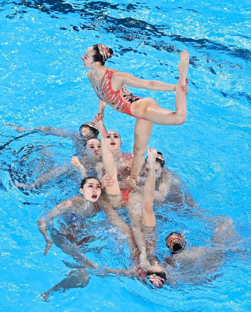 8月7日,中國隊(duì)在巴黎奧運(yùn)會(huì)花樣游泳集體技巧自選比賽中。新華社記者 夏一方 攝