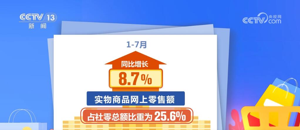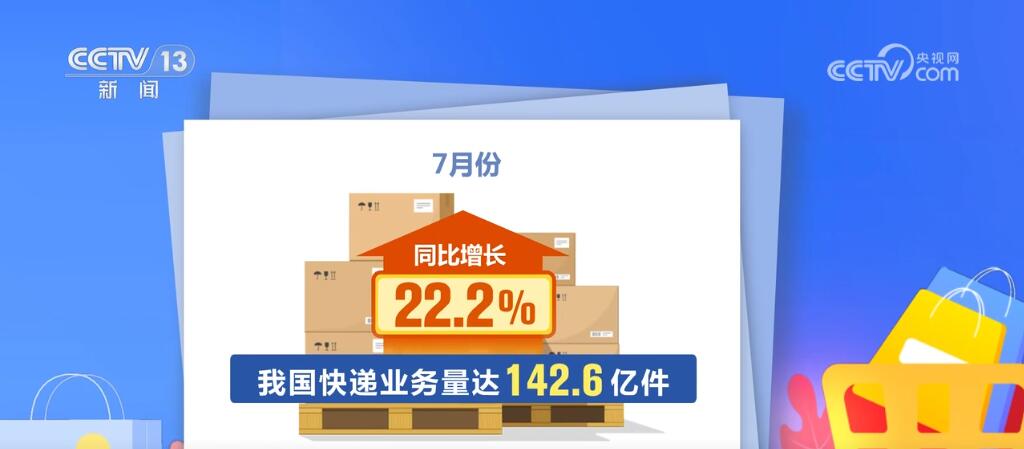 同時(shí),線上消費(fèi)增勢較好。1—7月,實(shí)物商品網(wǎng)上零售額同比增長8.7%,占社零總額比重為25.6%。7月份,我國快遞業(yè)務(wù)量達(dá)142.6億件,同比增長22.2%。