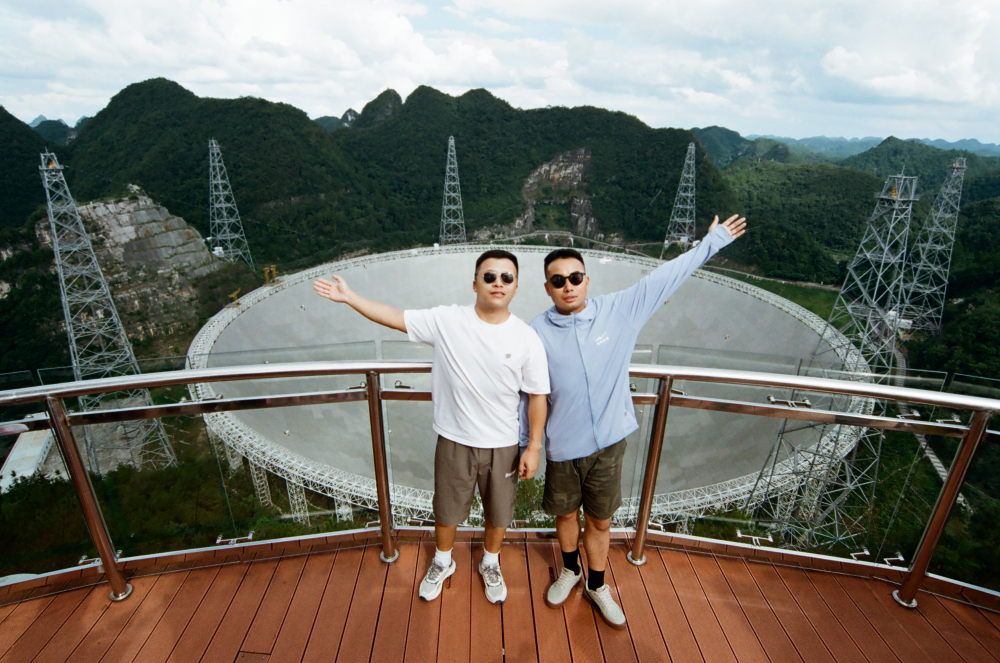 8月14日,游客在“中國天眼”景區(qū)觀景臺合影。新華社發(fā)