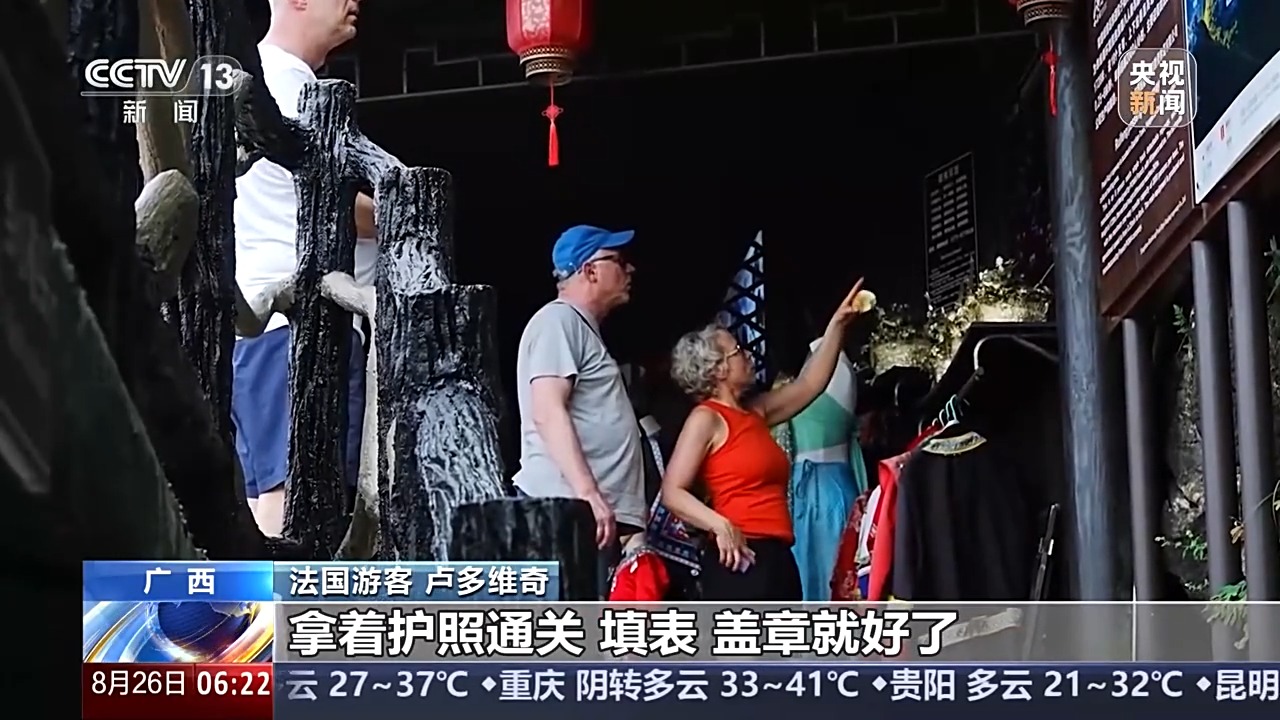 在廣西陽(yáng)朔,法國(guó)游客盧多維奇告訴記者,自己和妻子一年前來(lái)中國(guó)的時(shí)候,簽證還是比較麻煩的,但是現(xiàn)在,情況完全不同了。