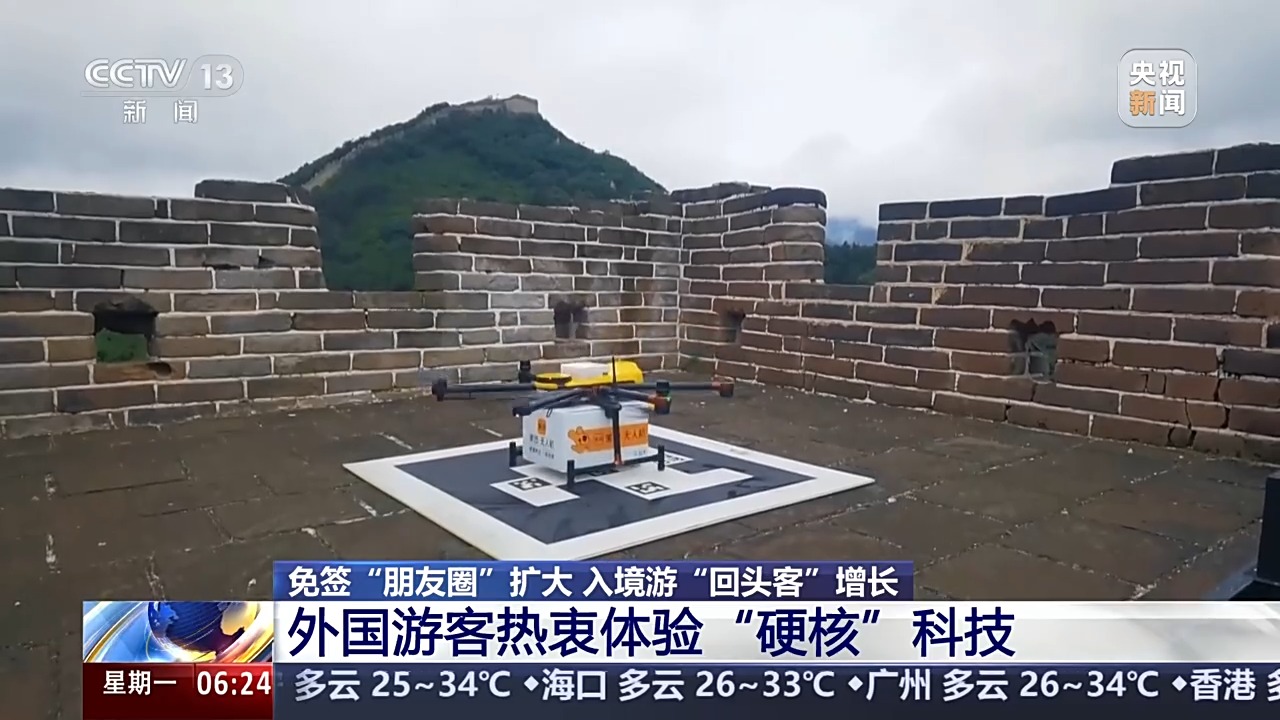 北京八達(dá)嶺長(zhǎng)城近期開(kāi)通了無(wú)人機(jī)“送外賣”服務(wù),最快5分鐘,來(lái)自山下的酸梅湯、雪糕、創(chuàng)可貼等商品就能送到長(zhǎng)城上來(lái)。