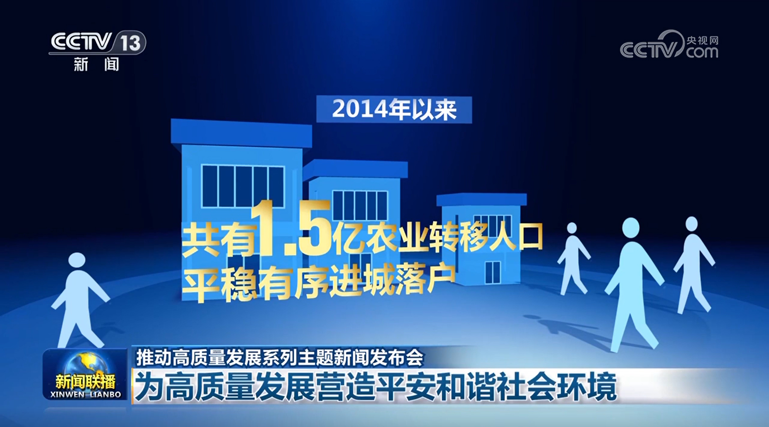 近年來,公安機關有序推進農業(yè)轉移人口市民化。2014年以來,共有1.5億農業(yè)轉移人口平穩(wěn)有序進城落戶,全國戶籍人口城鎮(zhèn)化率由2014年的35.9%提高到2023年的48.3%。