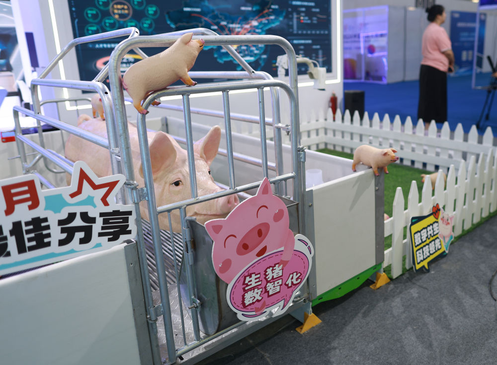 8月28日,觀展者在2024中國(guó)國(guó)際大數(shù)據(jù)產(chǎn)業(yè)博覽會(huì)現(xiàn)場(chǎng)參觀智能生豬全產(chǎn)業(yè)鏈數(shù)智化服務(wù)總平臺(tái)模型。