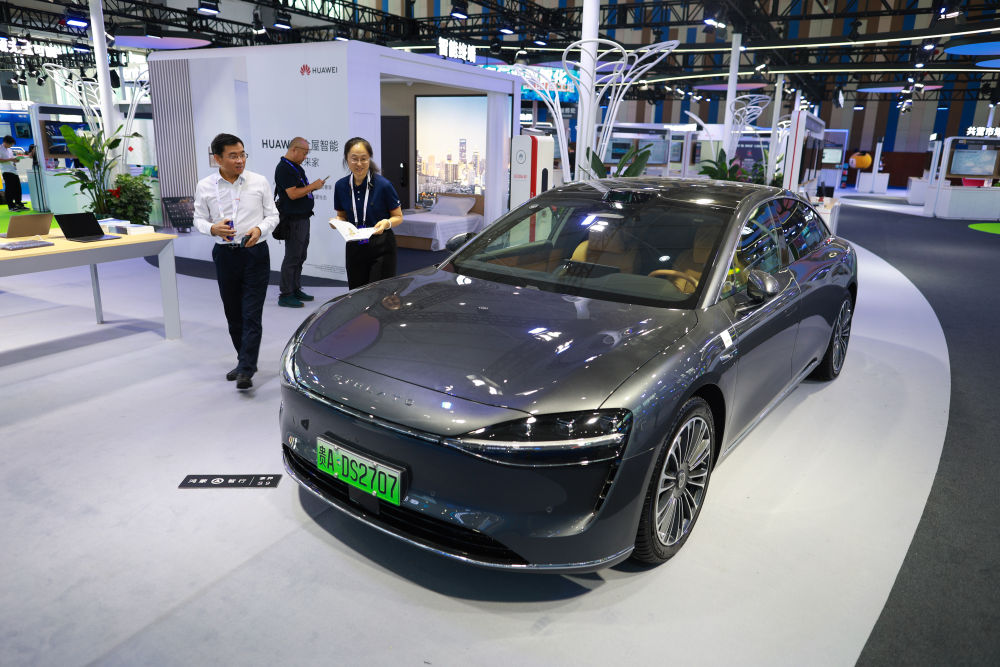 8月28日,觀展者在2024中國(guó)國(guó)際大數(shù)據(jù)產(chǎn)業(yè)博覽會(huì)現(xiàn)場(chǎng)參觀智能汽車。