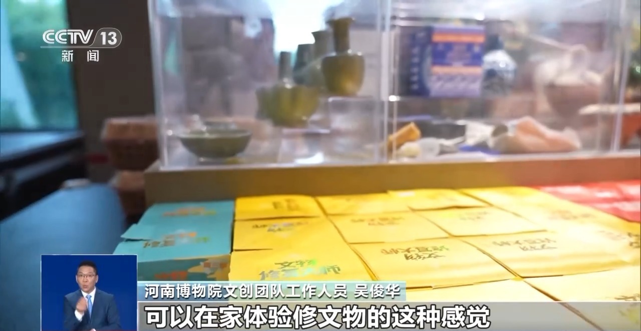 河南博物院文創(chuàng)團隊工作人員 吳俊華:這個文物修復(fù)大師系列,可以讓你在家體驗修文物的感覺。