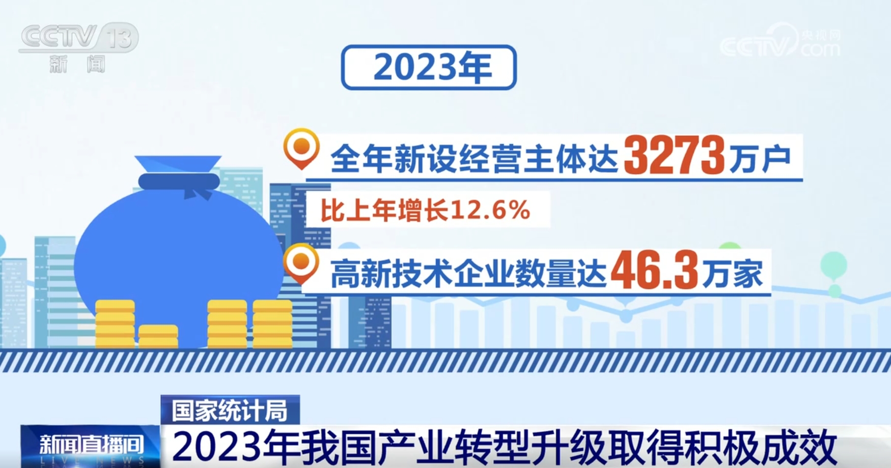 國(guó)家統(tǒng)計(jì)局最新數(shù)據(jù)還顯示,2023年,我國(guó)經(jīng)營(yíng)主體較快增加,投資結(jié)構(gòu)不斷優(yōu)化,傳統(tǒng)產(chǎn)業(yè)轉(zhuǎn)型升級(jí)速度加快,新產(chǎn)業(yè)新業(yè)態(tài)正持續(xù)壯大。