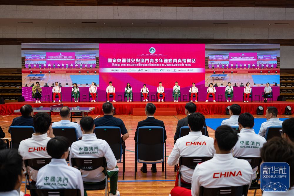 9月1日,內(nèi)地奧運(yùn)健兒代表團(tuán)在澳門奧林匹克體育中心室內(nèi)體育館與澳門青少年運(yùn)動(dòng)員進(jìn)行互動(dòng)交流。