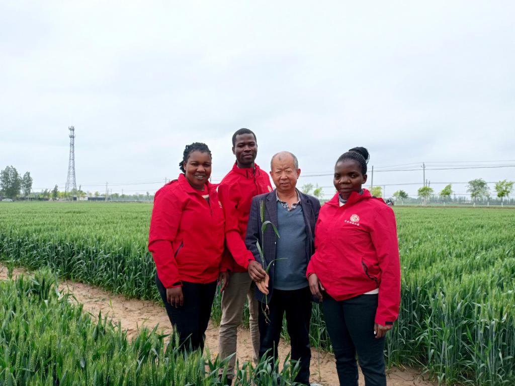 “中非科技小院”留學(xué)生庫瓦莉(左一)和同學(xué)們在位于河北曲周的農(nóng)戶試驗田和當?shù)剞r(nóng)民學(xué)習農(nóng)業(yè)生產(chǎn)技術(shù)間隙合影(5月10日攝)。新華社發(fā)(受訪者供圖)