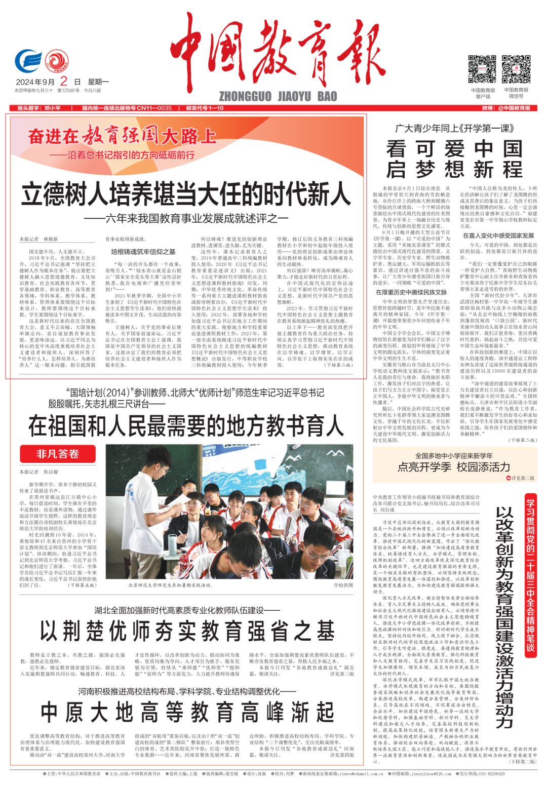 今天,“奮進(jìn)在教育強(qiáng)國大路上——沿著總書記指引的方向砥礪前行”專欄之“六年來我國教育事業(yè)發(fā)展成就述評(píng)”系列推出第一篇《立德樹人培養(yǎng)堪當(dāng)大任的時(shí)代新人》,一起來看——