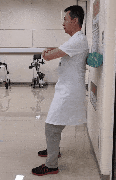 雙腳分開,雙手扶在墻面或扶手上,保證平衡。足跟緩慢抬起,停留一會(huì)兒,然后恢復(fù)至初始動(dòng)作。此為一個(gè)完整動(dòng)作。8~12次/組,做3組。