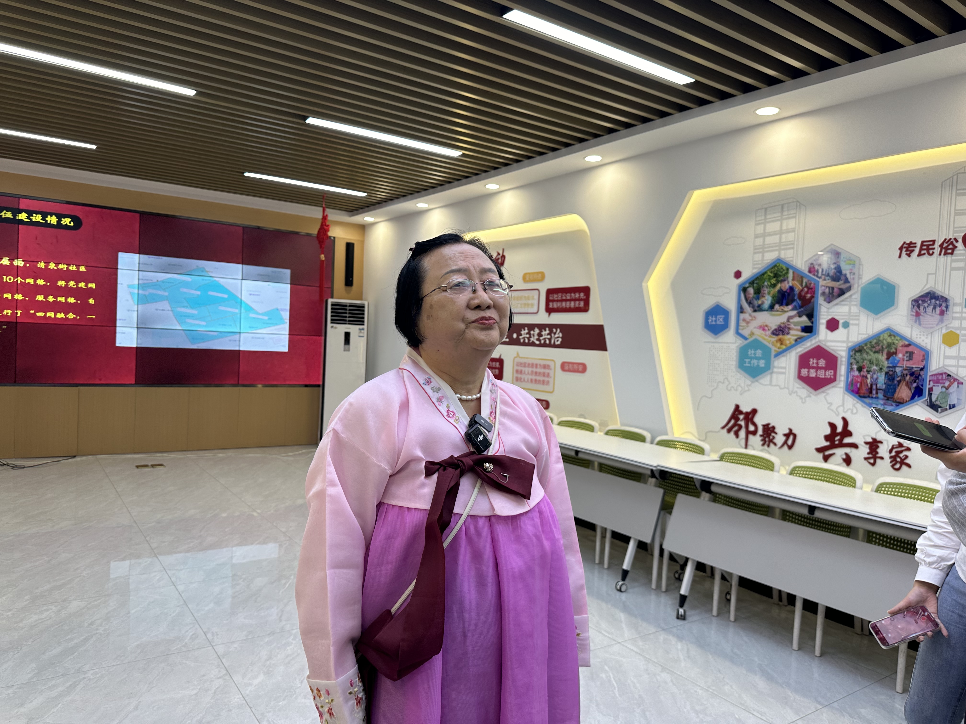居民代表金福姬接受媒體采訪。中國經(jīng)濟(jì)網(wǎng)記者 楊淼/攝