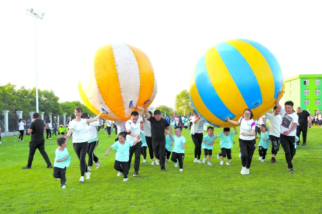 遼寧省鞍山市幼兒園組織幼兒和家長(zhǎng)一起快樂做游戲。