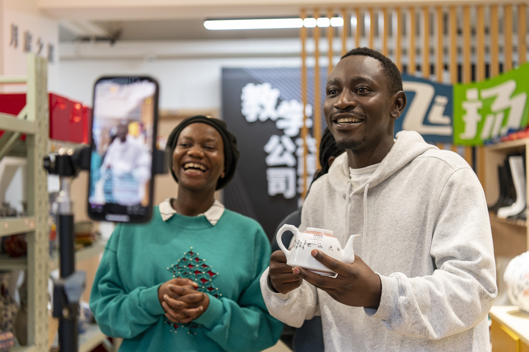 來(lái)自盧旺達(dá)的非洲留學(xué)生正在認(rèn)真練習(xí)中文“直播帶貨”