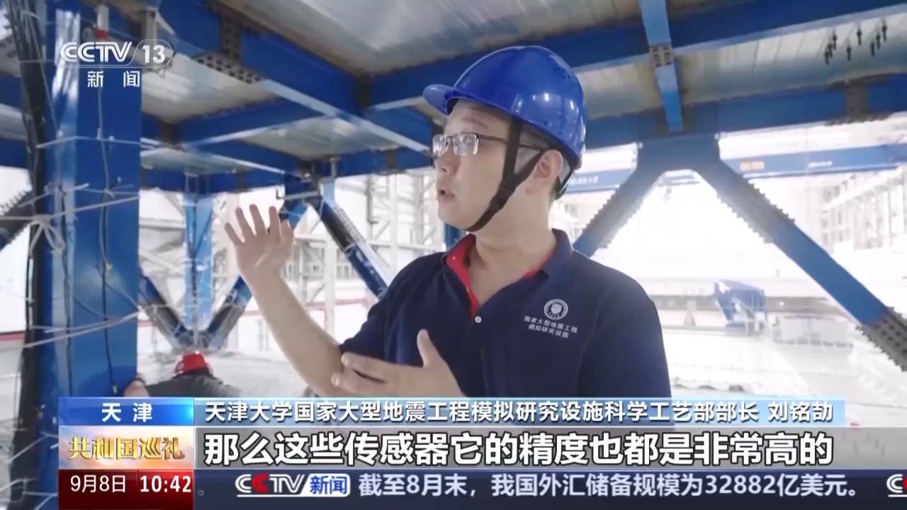 天津大學國家大型地震工程模擬研究設(shè)施科學工藝部部長 劉銘劼:我們安裝的傳感器加在一起有500多個,那么這些傳感器它的精度也都是非常高的,比方說我們測量結(jié)構(gòu)變形的傳感器,它的最小測量的值是0.1個毫米,比我們頭發(fā)絲直徑還要再小。