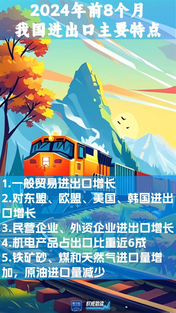 海關(guān)總署10日發(fā)布數(shù)據(jù):2024年前8個(gè)月,我國貨物貿(mào)易進(jìn)出口總值28.58萬億元人民幣,同比增長6%。其中,出口16.45萬億元,同比增長6.9%;進(jìn)口12.13萬億元,同比增長4.7%。