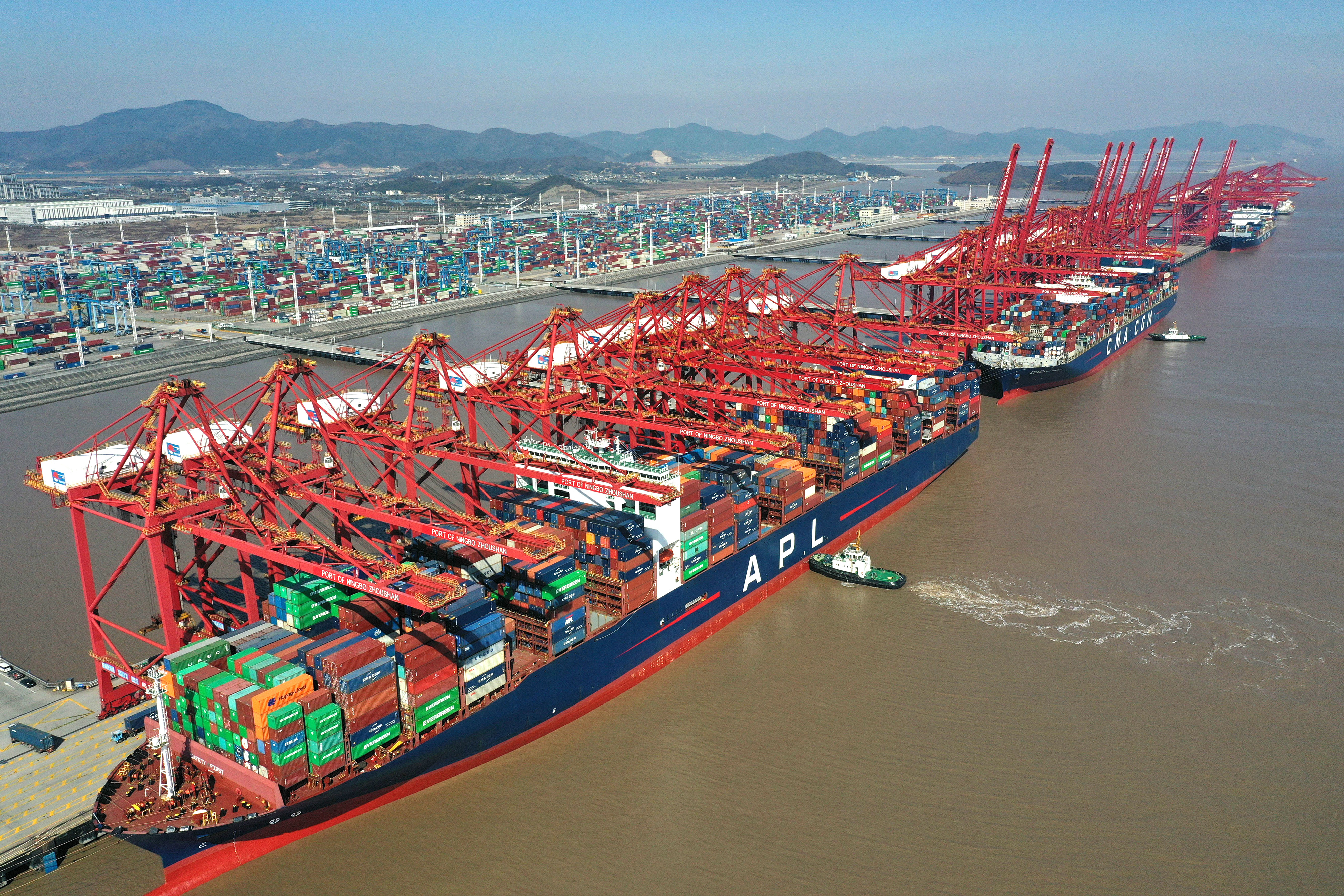 貨輪??吭谡憬瓕幉ㄖ凵礁勖飞礁蹍^(qū)碼頭(2024年1月24日攝,無人機(jī)照片)。新華社記者 黃宗治 攝