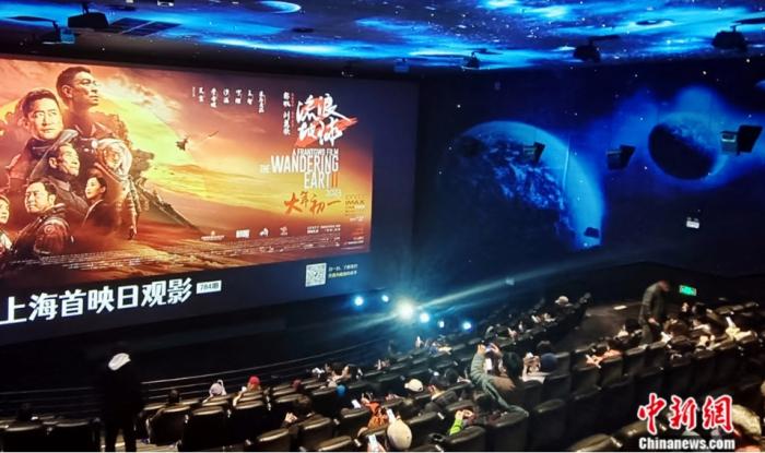 2023年1月22日,影迷在上海一電影院觀看國(guó)產(chǎn)科幻片《流浪地球2》。陳玉宇 攝