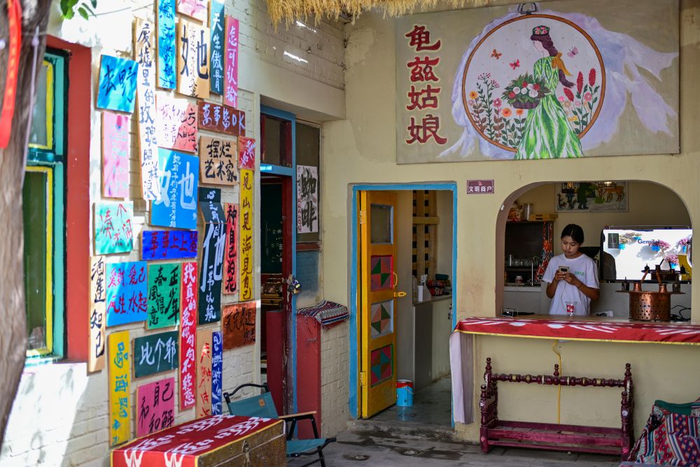來(lái)到龜茲小巷,各式各樣、色彩明艷的木門(mén)總能讓游人目光停駐,推門(mén)入院又是另一番風(fēng)景。走進(jìn)“爺爺?shù)募摇甭糜渭以L院,傳統(tǒng)古建筑氣息迎面而來(lái),這座有上百年歷史的民居融和了多民族建筑藝術(shù)特點(diǎn),門(mén)窗設(shè)計(jì)、前檐廊木結(jié)構(gòu)等與我國(guó)傳統(tǒng)木構(gòu)建筑一脈相承。