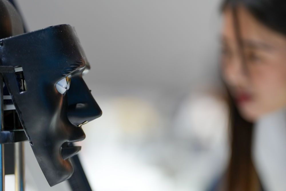 9月12日,一款智能機(jī)器人在服貿(mào)會國家會議中心會場向觀眾“比心”。新華社記者 鄒廣萍 攝
