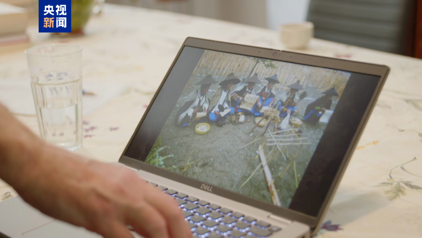 △托馬斯·海貝勒向記者展示在中國調(diào)研過程中拍攝到的照片