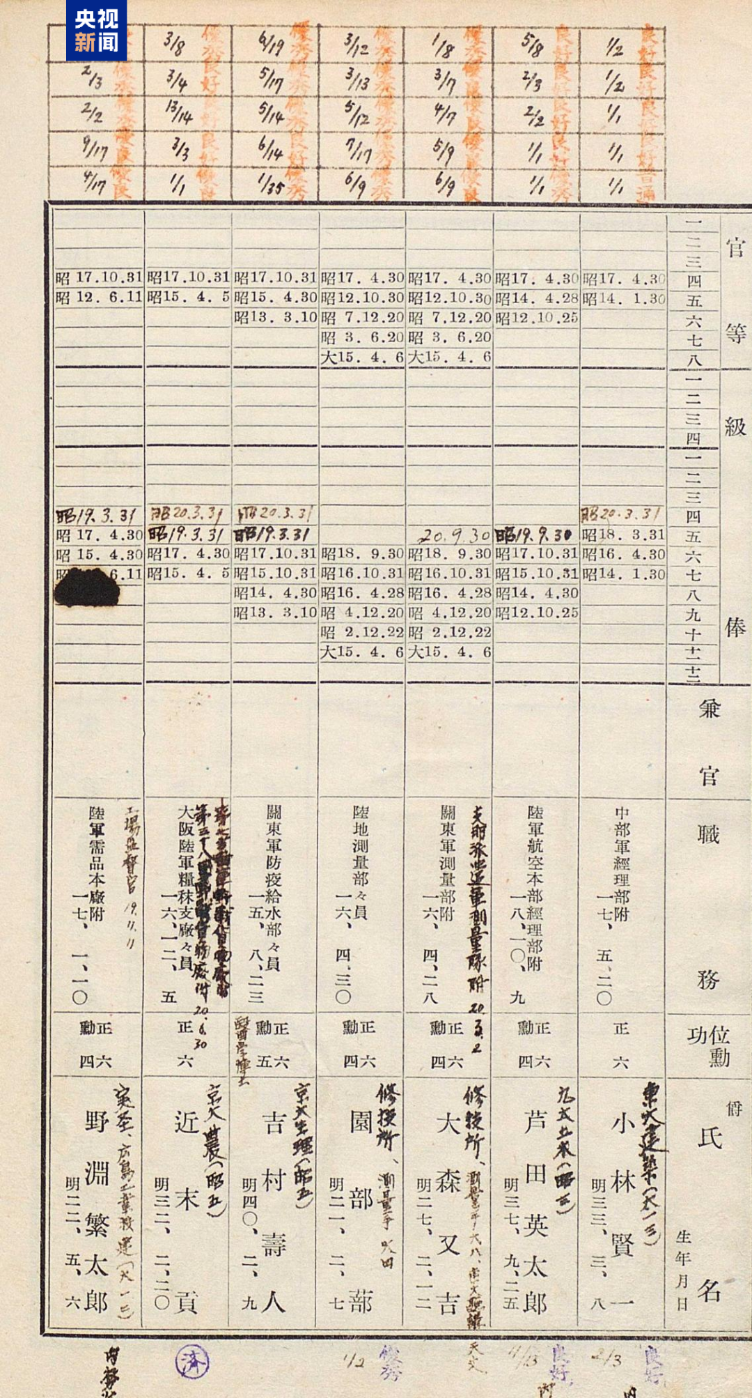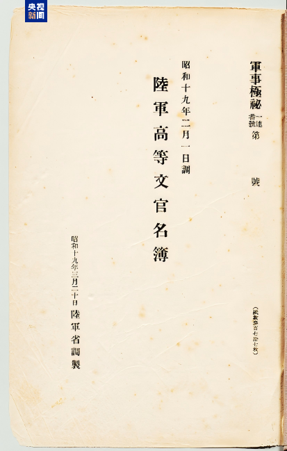 侵華日軍第七三一部隊罪證陳列館與日本學(xué)者松野誠也聯(lián)合發(fā)布了一份最新發(fā)現(xiàn)的史料文獻(xiàn)《陸軍高等文官名簿 陸軍書記官 陸軍技師》。