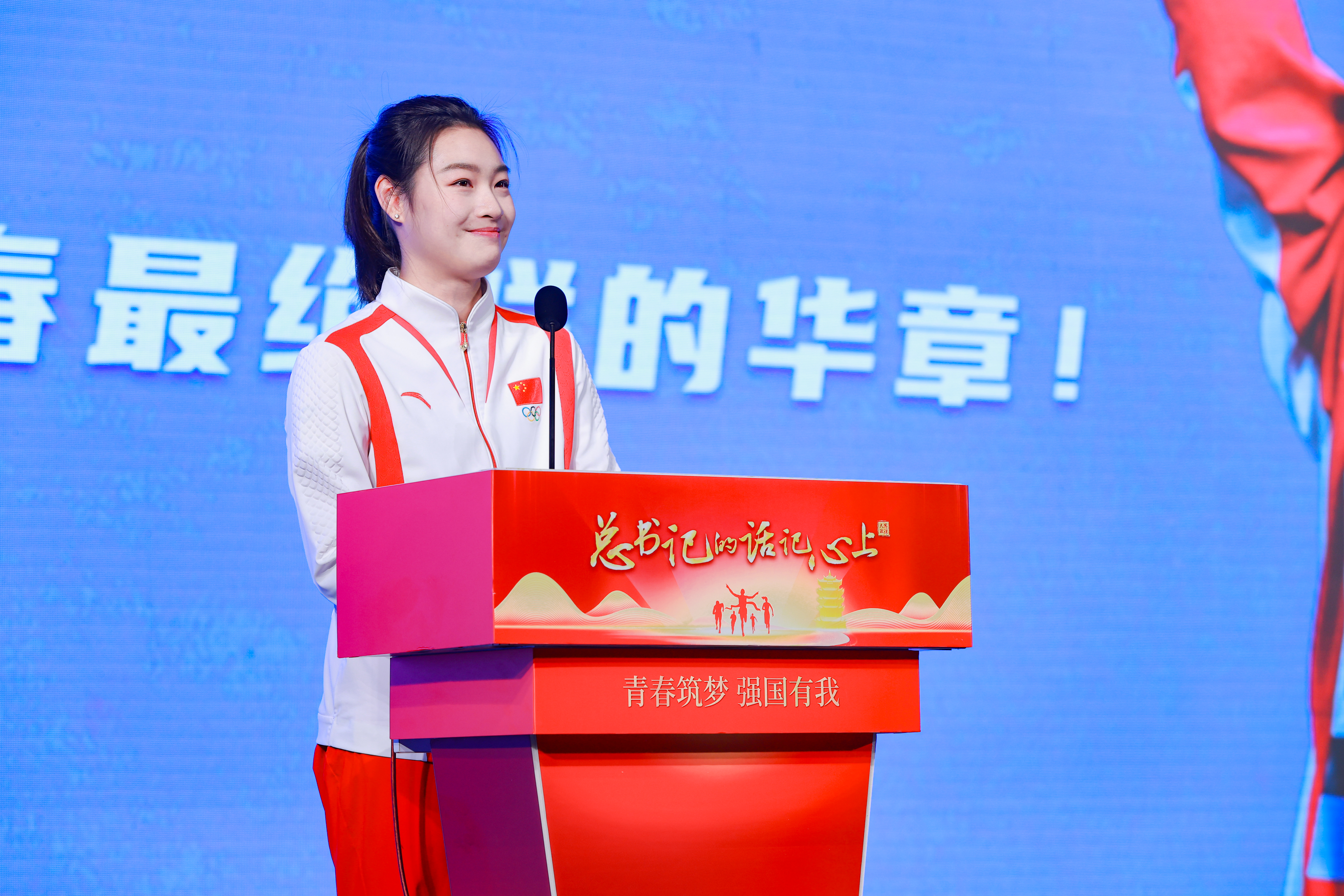 奧運(yùn)冠軍昌雅妮驚喜亮相,一到現(xiàn)場就引起了學(xué)生們的歡呼與喝彩。她和同學(xué)們親密合影,引爆全場!接著,她登臺動情講述奪冠背后的故事:“從跳校到奧運(yùn)冠軍,我的每一步都凝聚著汗水、淚水與堅(jiān)持……”回憶起訓(xùn)練的艱辛歷程,她幾度哽咽落淚,讓人心疼。決勝巴黎、綻放奧運(yùn)的背后,是堅(jiān)持的力量!昌雅妮以自己的切身經(jīng)歷,激勵青年學(xué)子:“只要有夢想,我們就不懼遠(yuǎn)航,堅(jiān)持的力量,將繪就青春最絢爛的華章!”