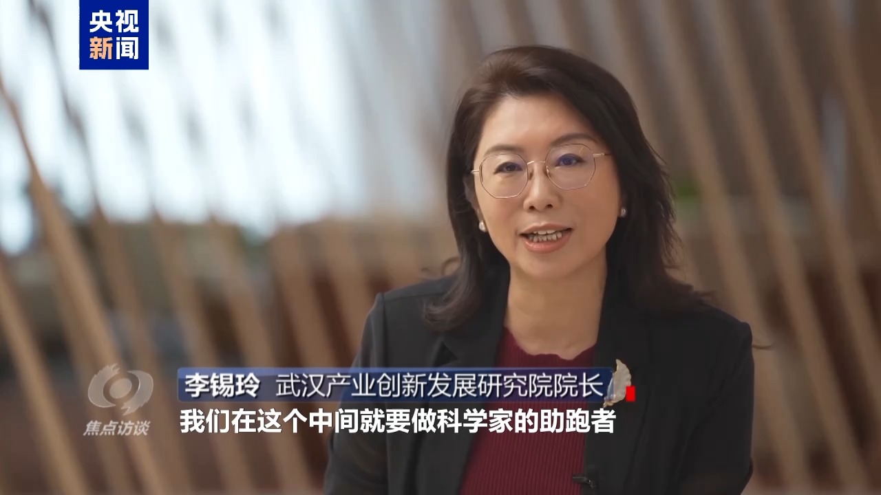 武漢產(chǎn)業(yè)創(chuàng)新發(fā)展研究院院長 李錫玲:我們?cè)谶@個(gè)中間就要做科學(xué)家的助跑者,整個(gè)轉(zhuǎn)化的過程中他需要什么,我們來給他補(bǔ)足什么。