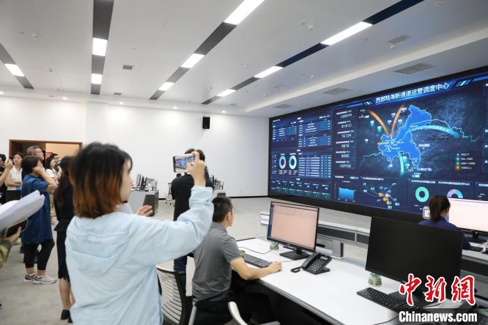 圖為采訪團成員走訪西部陸海新通道運營調(diào)度中心。梁欽卿 攝