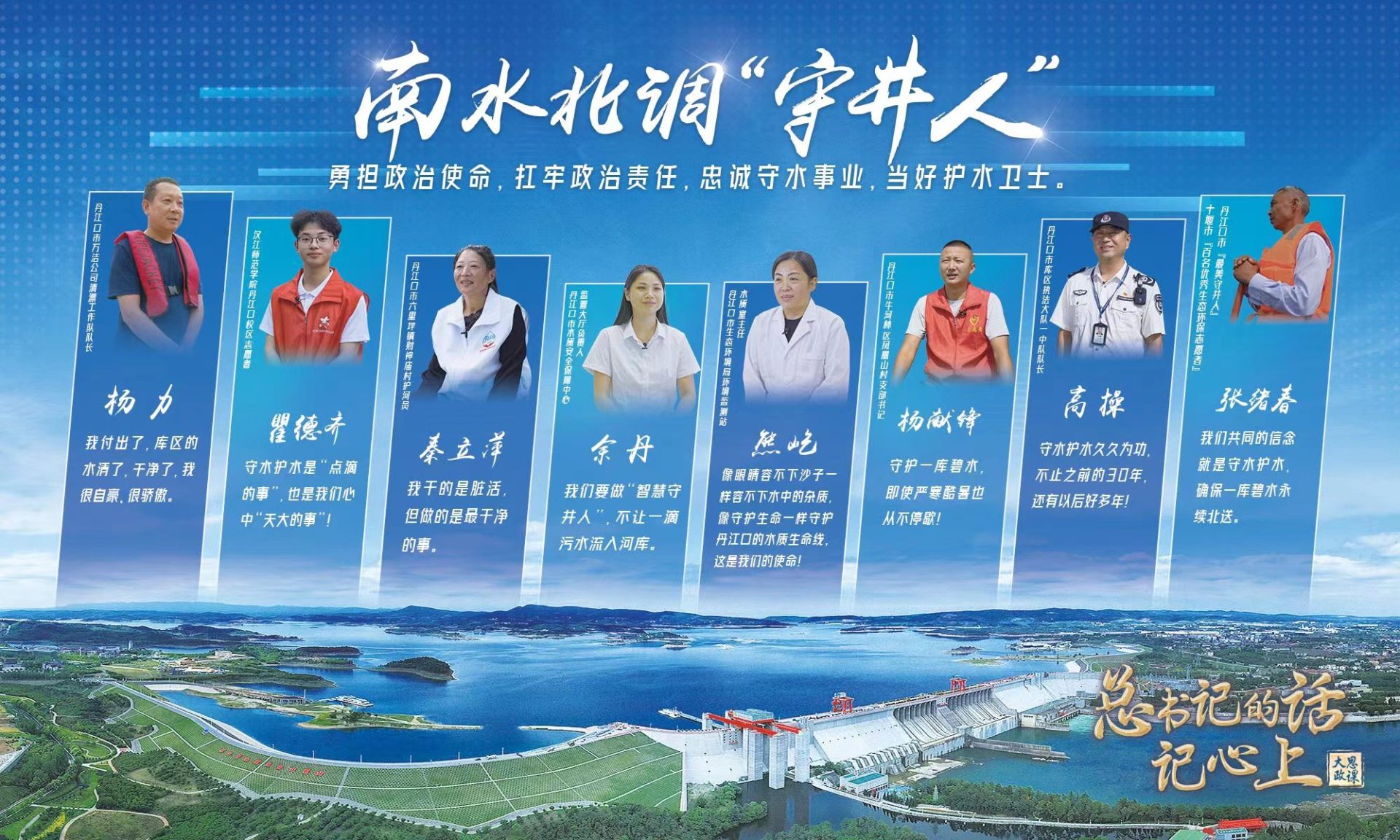以前是漁民現(xiàn)在是清漂隊(duì)員的張旭春,十年守護(hù)重要入庫(kù)河流的護(hù)水員秦立萍,二十四小時(shí)在線(xiàn)的“智慧守井人”余丹,巡庫(kù)三十年的庫(kù)區(qū)執(zhí)法隊(duì)隊(duì)長(zhǎng)高操……在這塊土地上,他們把水看得比自己的生命還重要。