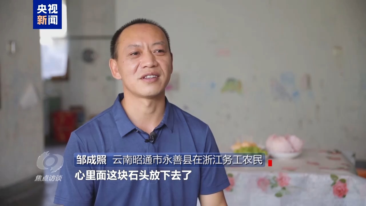 云南昭通市永善縣在浙江務(wù)工農(nóng)民 鄒成照:心里面這塊石頭放下去了,我的第一個愿望就是希望我的孩子跟城里的孩子一樣,能夠享受到城市之間這種便利、發(fā)展。