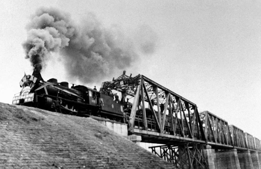 1951年12月,成渝鐵路沱江大橋建成通車后,第一列火車通過(guò)大橋。新華社發(fā)