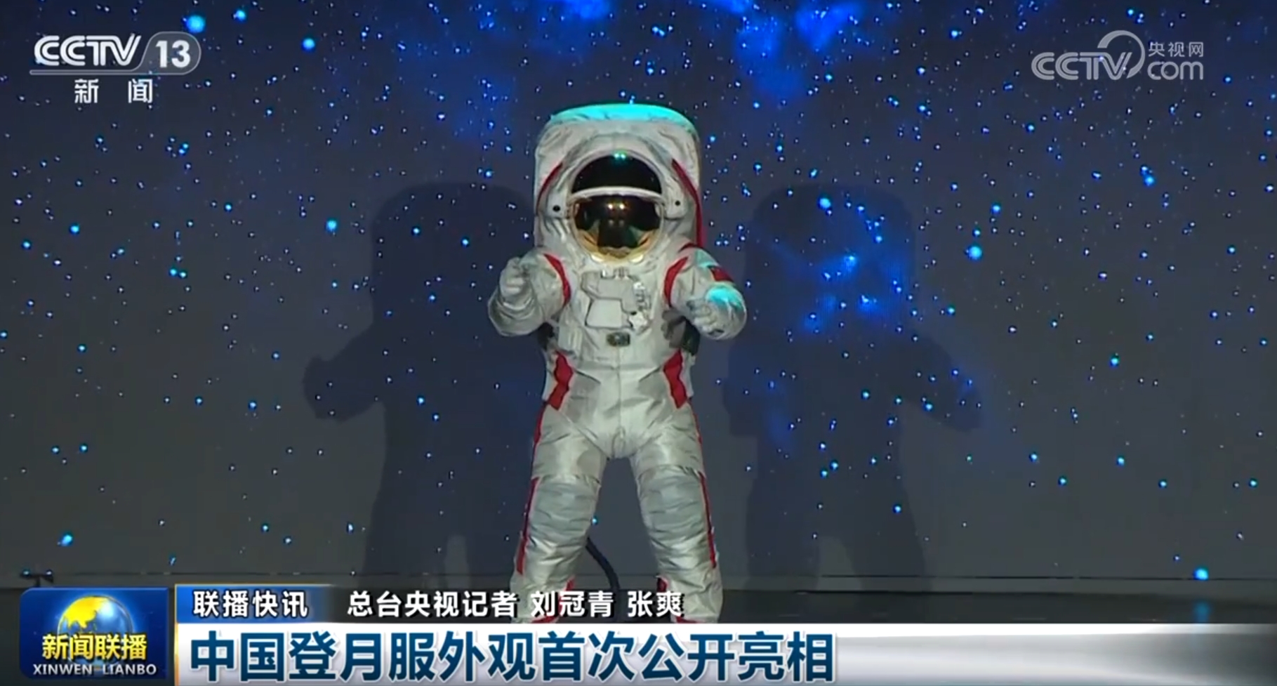 9月28日,中國載人航天工程辦公室面向社會發(fā)布登月服征名活動,并首次公開中國登月服外觀。此次亮相的中國登月服外觀,上身裝飾帶設計融合了飛天飄帶的優(yōu)雅飄逸和傳統(tǒng)鎧甲的硬朗厚重,體現(xiàn)了剛柔并濟的中國哲學;腿部裝飾帶設計成火箭升空尾焰造型,與上身呼應,形成一飛沖天的勢態(tài),體現(xiàn)了中國騰飛的設計理念。