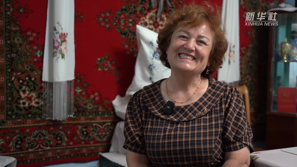 一頭金黃卷發(fā)、一雙深邃的藍(lán)眼睛,這位年過(guò)六旬的塔塔爾族婦女再屯娜·卡利穆瓦被大家親切地稱為“洋”婆婆。