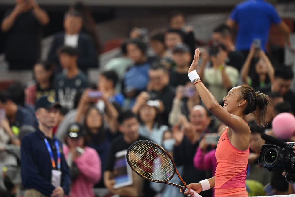 9月28日,鄭欽文在賽后向觀眾致意。當日,在北京進行的2024中國網球公開賽女單第二輪比賽中,中國選手鄭欽文2:0戰(zhàn)勝俄羅斯選手拉希莫娃,晉級下一輪。新華社記者 張龍 攝