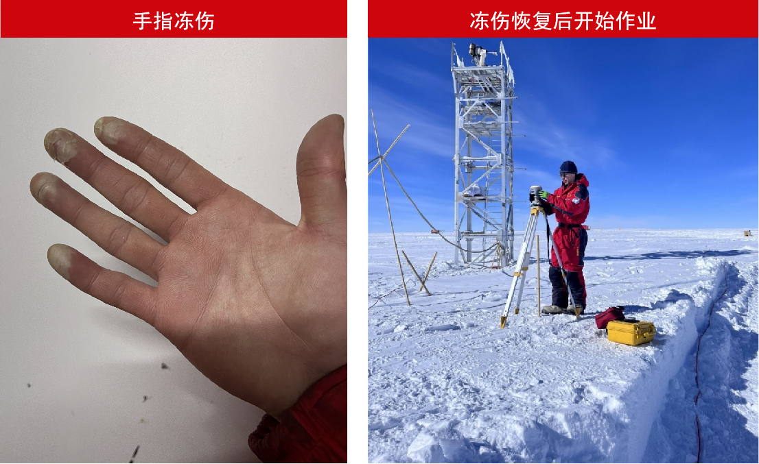 真正到了南極,他也親身體會了這些生死挑戰(zhàn)。在剛剛抵達昆侖站開展作業(yè)的過程中,因為需要點觸手機屏幕,不能穿戴厚手套,超過零下30度的極寒凍傷了他的手指,隨隊醫(yī)生診斷說再嚴(yán)重下去可能會有截肢的風(fēng)險?!拔译y道我就這樣無法完成這次的任務(wù)了嗎?”在耿通強烈地請求下,醫(yī)生為他做了引流治療,傷情才得以好轉(zhuǎn)。而他也未等手指恢復(fù),便投入到緊張的科研工作中。