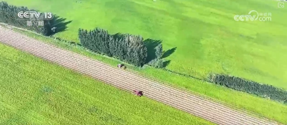 從空中俯瞰,層層疊疊的稻田在陽光的照耀下,如同一幅精美的畫卷。伴隨著收割機的轟鳴聲,一束束金黃的稻穗被收入囊中。