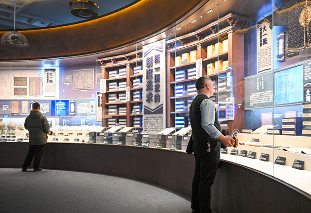 ▲2023年12月23日,參觀者在鑄牢中華民族共同體意識(shí)文物古籍展上參觀。展覽分為大一統(tǒng)、大交融、大團(tuán)結(jié)三個(gè)單元,共展出1500余件珍貴文物古籍。 新華社記者 郝建偉 攝