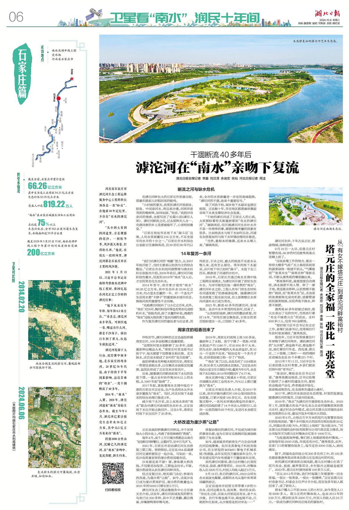 2014年,“南水”入冀。2019年,滹沱河迎來“南水”首輪生態(tài)補水。截至今年6月,滹沱河已累計接受生態(tài)補水38億立方米,其中12.5億立方米來自“南水”。