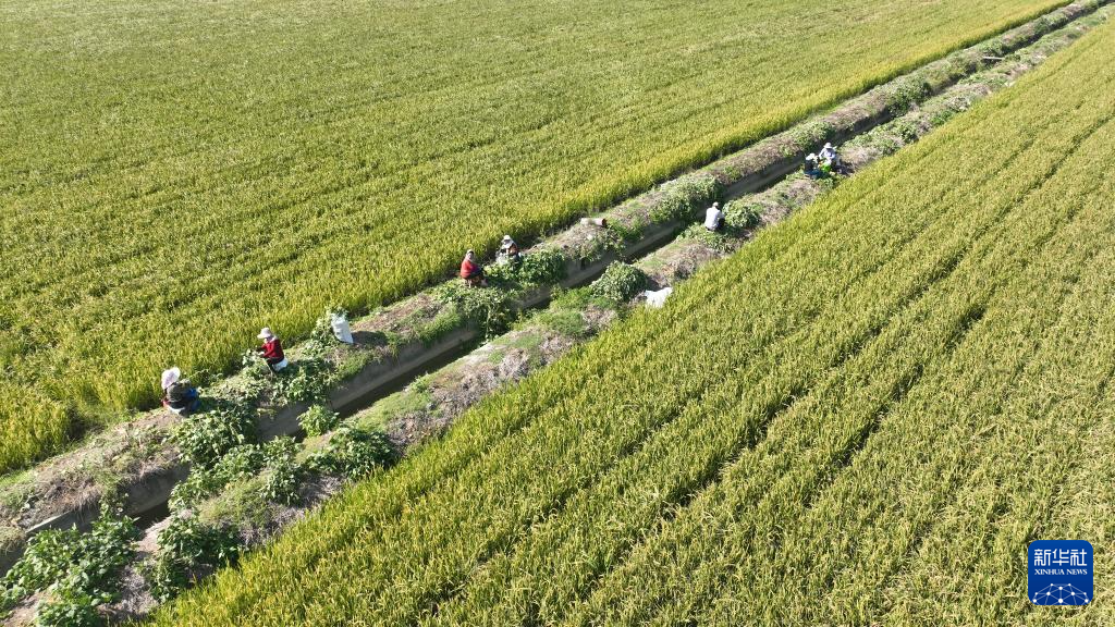10月4日,江蘇省淮安市洪澤區(qū)農(nóng)民在采摘毛豆(無(wú)人機(jī)照片)。新華社發(fā)(萬(wàn)震攝)