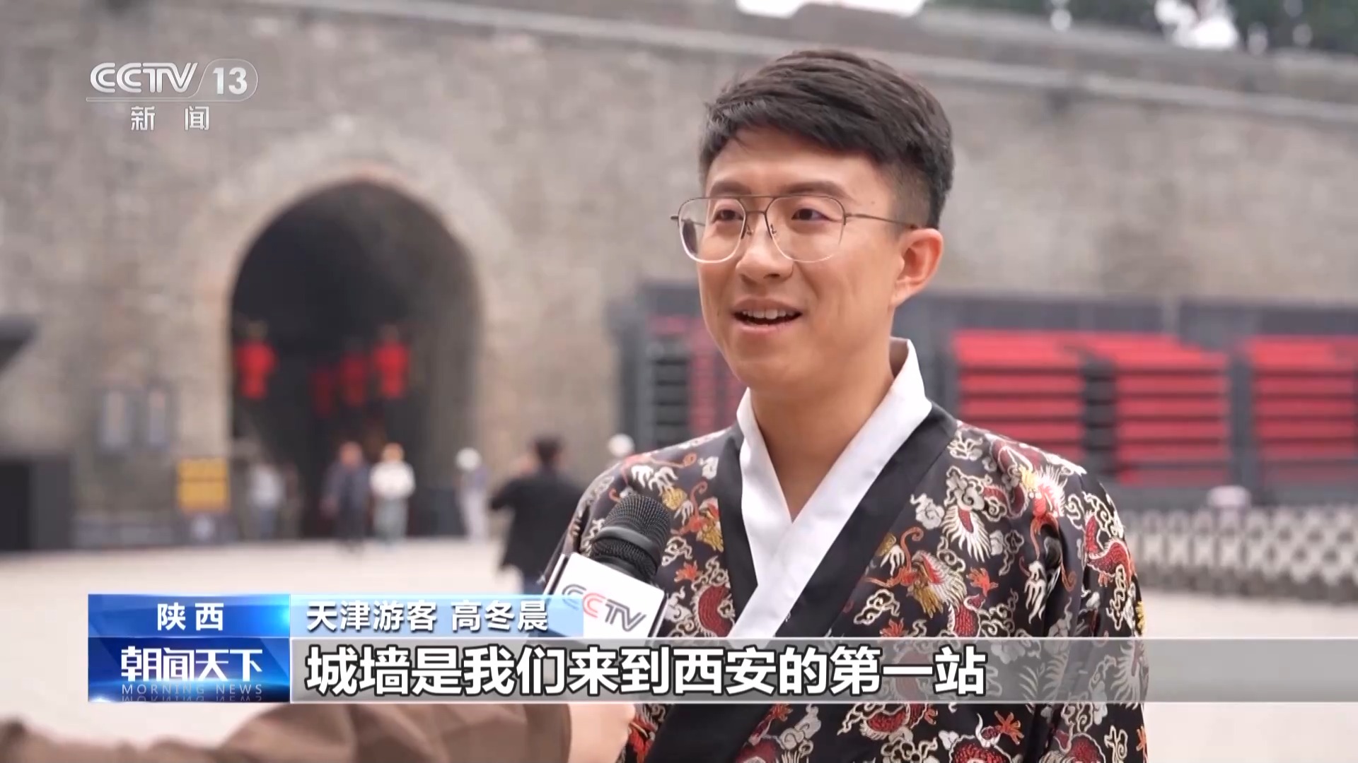 天津游客 高冬晨:城墻是我們來到西安的第一站,來了之后第一個(gè)感覺就是這里非常雄偉,非常震撼,而且非常有文化底蘊(yùn)。