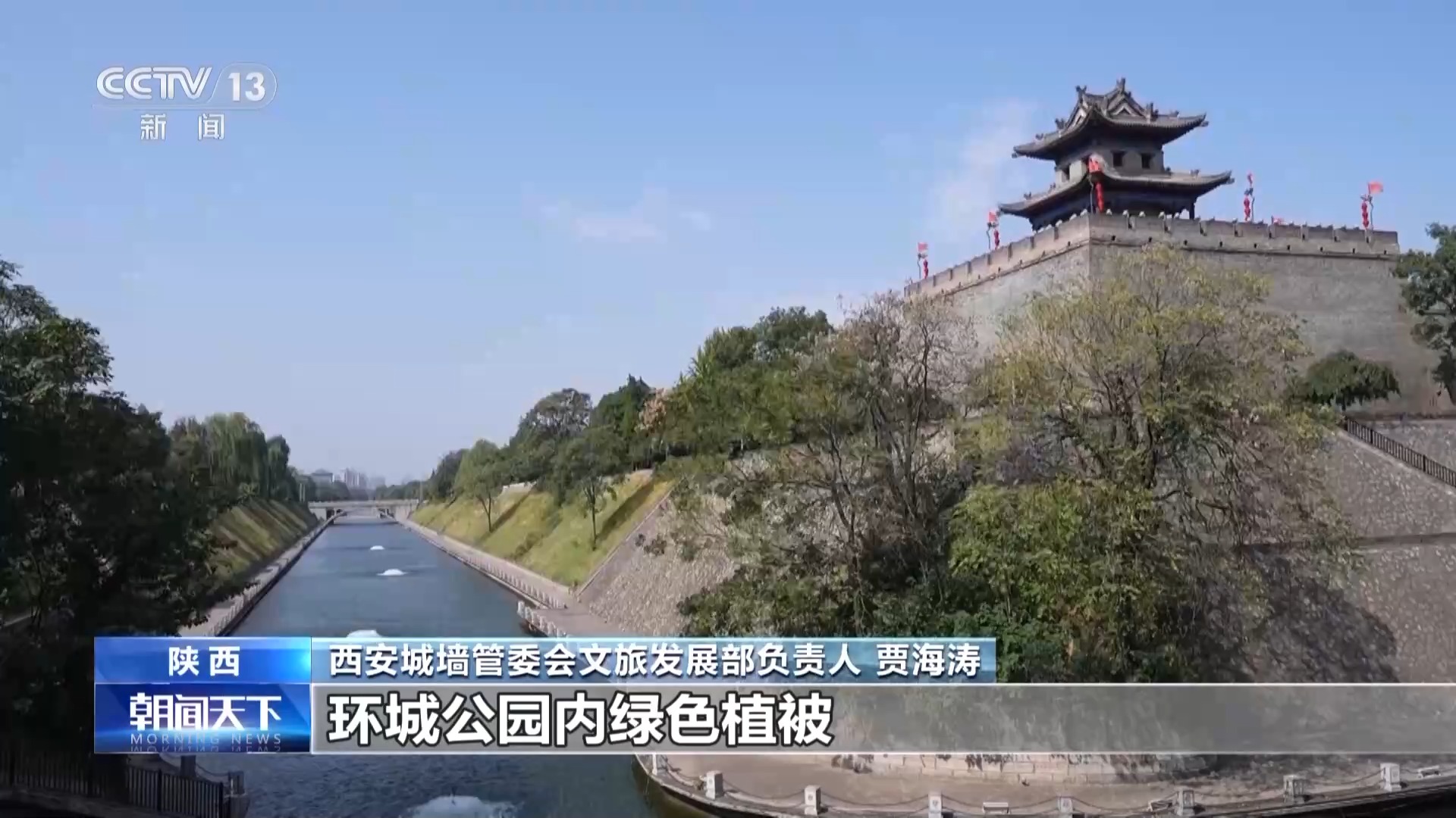 西安城墻管委會(huì)文旅發(fā)展部負(fù)責(zé)人 賈海濤:對(duì)護(hù)城河水體進(jìn)行全面修復(fù)治理,改善和優(yōu)化水體健康,環(huán)城公園內(nèi)綠色植被達(dá)到了104.5萬平方米,栽植水生植物2000余平方米。