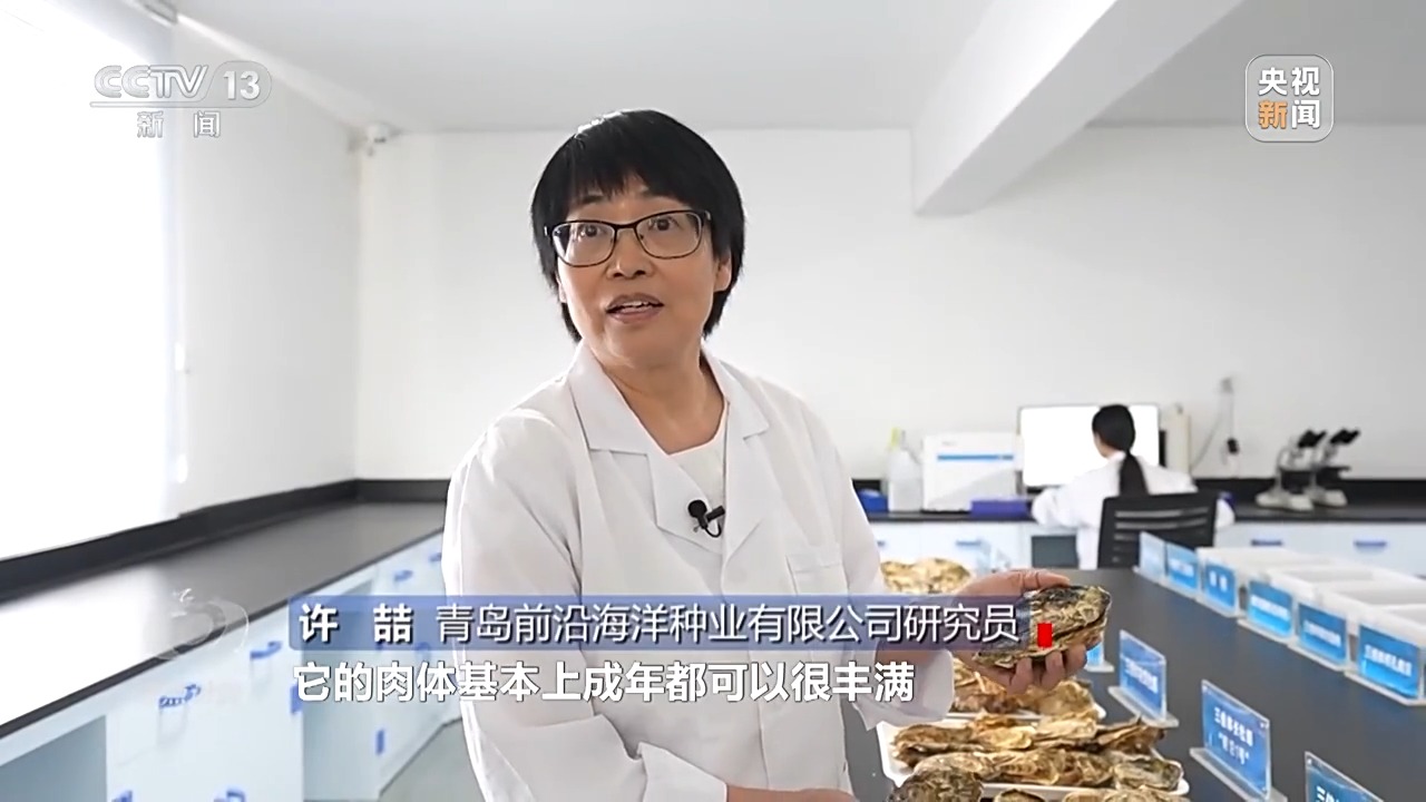 青島前沿海洋種業(yè)有限公司研究員 許喆:“正常的牡蠣都是二倍體,它們兩個的年齡差不多,二倍體要比三倍體小很多,因為三倍體多了一套染色體,繁殖季節(jié)不排漿,它的肉體基本上全年都可以很豐滿,可以提供給大家鮮美的生蠔?!?/p>